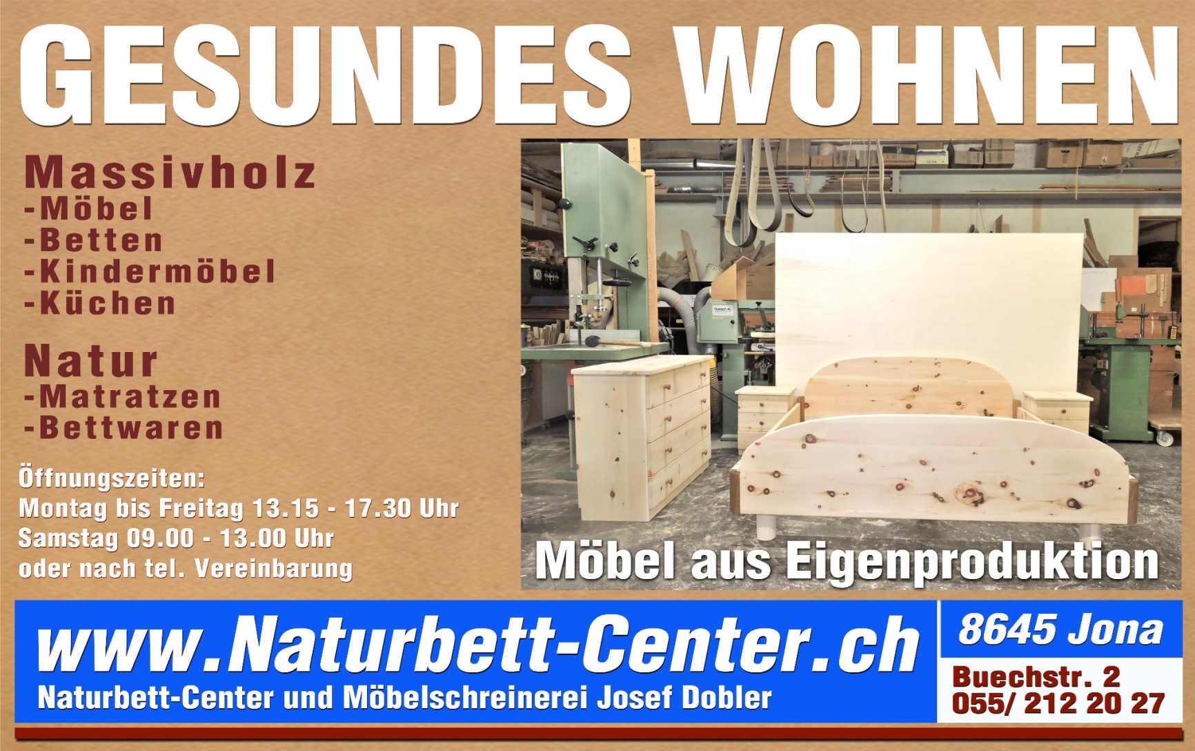 Wir verarbeiten einheimisches massives Holz und behandeln es mit Naturharzöl und Wachs. So bleibt es atmungsaktiv und ist einfach nachzupflegen.